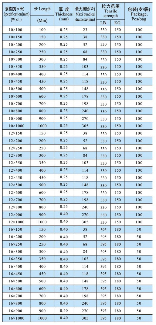 三、201不銹鋼扎帶技術(shù)參數(shù):